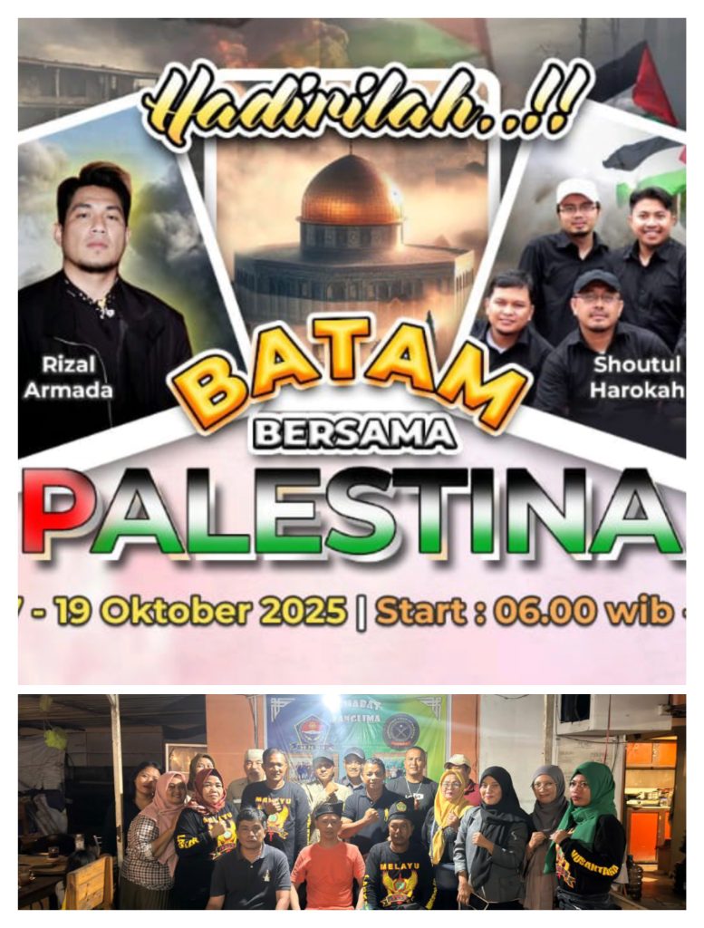 Batam – Laskar Melayu Bersatu Nusantara (LMB Nusantara) memandang bahwa Palestina bukan sekadar isu internasional, tetapi persoalan kemanusiaan yang menyentuh hati nurani umat manusia. Tanah suci yang penuh berkah itu hingga kini masih diliputi penderitaan akibat penjajahan dan penindasan. Bagi kami, perjuangan rakyat Palestina adalah simbol keteguhan, keberanian, dan pengorbanan dalam mempertahankan hak yang sah atas tanah air mereka.